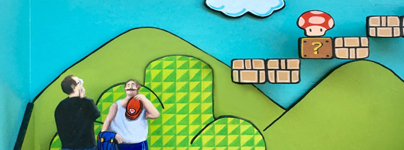 Unter anderem hat Oliver Wetterauer seine schönsten "Handheld"-Konsolenspiele zusammen mit Screenshots als Fotos auf DIN A3 große Poster gedruckt. Da auf den anderen Wänden Wetterauers kleinformatigen Gemälde auf Holz hängen, können die Besucher seine kreativen Verarbeitungen in einen direkten Dialog mit Super Mario, den Space Invaders & Co bringen. Dabei ist alles keinesfalls so "niedlich", wie es zunächst scheint.