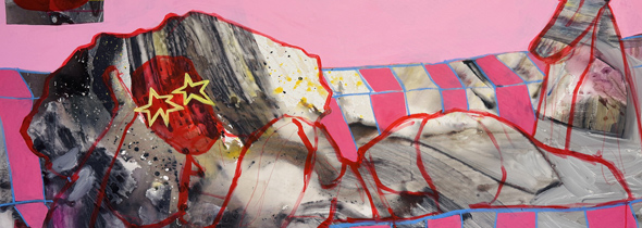 Die Schau " Holger Kurt Jäger, Christiane Köhne – Pink Freud" ist leider vorbei, es ist aber ein Katalog erschienen, der in der Galerie für 10 € zu erwerben ist. Außerdem gibt es eine Künstler-Edition mit individuellem Cover für 100 €. Abb.: Christiane Köhne: Helden 2 (Ausschnitt).